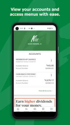 Manage your finances on the go for FREE* with A+ Mobile. You can perform financial transactions with A+FCU anywhere, right from your Android device.