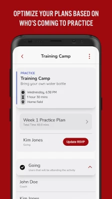 Have team members RSVP for upcoming events to keep track of who's attending practices and games.
