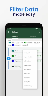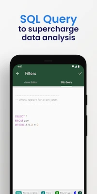 - Analyzing your data is easy by using visual filters or SQL queries.