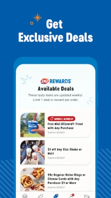 Satisfy your cravings with easy ordering and get food fast at Dairy Queen®. Plus, earn food rewards and receive exclusive deals that are only available through the App.