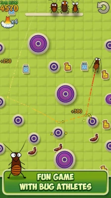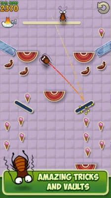Help your bug perform the vault of the century, winning the hearts of spectators and referees from all over the world! The judges are strict, but if you can be bold and brave, grabbing a bunch of yummy leftovers as you go, they'll be totally smashed! You'll have to break your head – literally – to get on the winner's podium at all 50 levels, but oh well – everything has its price.