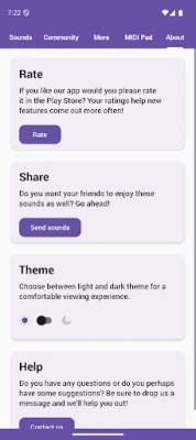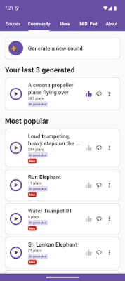 Longclick to save the sounds to a local folder to use in other apps ! Longclick to save as notification sound Longclick to save as ringtone sound. Loop sounds with the loop button at the top.