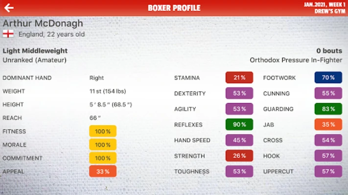 Different boxers peak at different stages during their careers, and as time passes your boxers will age and their abilities will wane. Young, fresh-faced opponents will rise through the ranks to challenge your dominance, and wily old campaigners will battle on long passed their best, eager to show they’ve still got it.