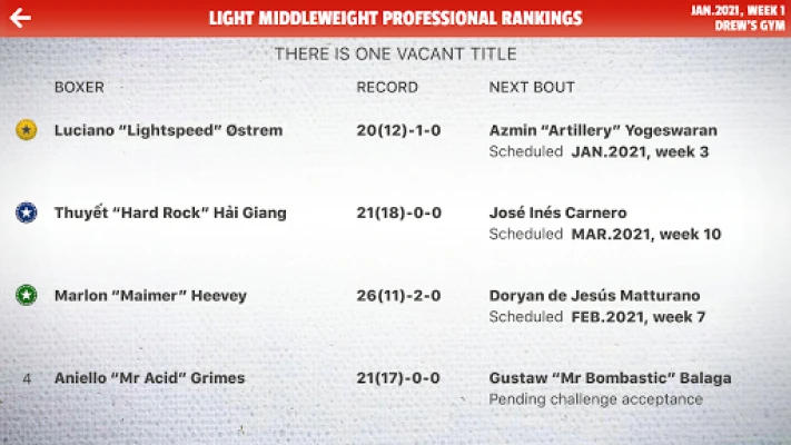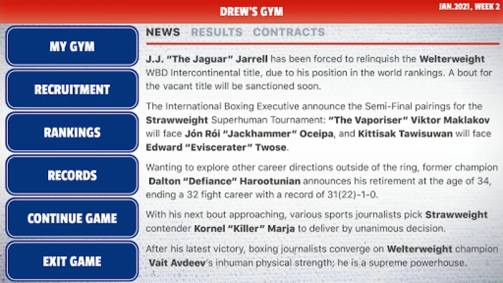 But the boxing world is a slippery one; losing bouts will delay your ability to challenge others, ruining your momentum and allowing other promising stars to challenge your position. Suffering injuries during bouts will lower your boxer’s subsequent fitness, meaning they will be less effective in the next bout unless given time to rest and recuperate. Boxers you seek revenge upon might shift weight division, foiling your plans for immediate payback.
