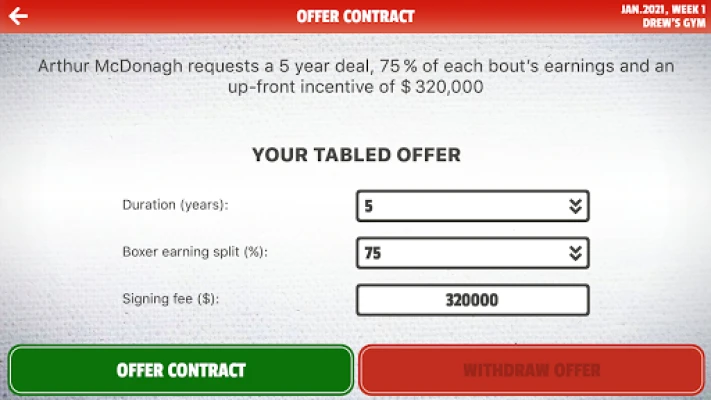 Become a rookie boxing manager with something to prove: recruit promising young amateurs, established professionals or retired veterans, challenge favourable opponents, and train your fighters for upcoming bouts. Fights are won or lost depending on the strategy and tactics you devise, so it’s crucial to analyse both your combatant and your opponent to create the correct fight plan. Winning bouts will move your boxer up their respective weight division rankings, to eventually challenge for the world championship belt itself.