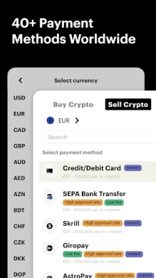 Enjoy a wide range of payment methods to fund your crypto purchases. Paybis Crypto Defi Wallet supports credit/debit cards, bank transfers, and alternative payment providers (Skrill, Neteller), ensuring flexibility and convenience to buy crypto. With its intuitive mobile interface, you can quickly buy Bitcoin (BTC), Tether (USDT), Ripple (XRP), Ethereum (ETH), Binance Coin (BNB), Bitcoin Cash (BCH), Litecoin (LTC), Tron (TRX), Dogecoin (DOGE), Solana, Polkadot, Cardano (ADA), Monero (XMR), Shiba inu (SHIB), Polygon (MATIC), or any other supported digital asset using your credit card.