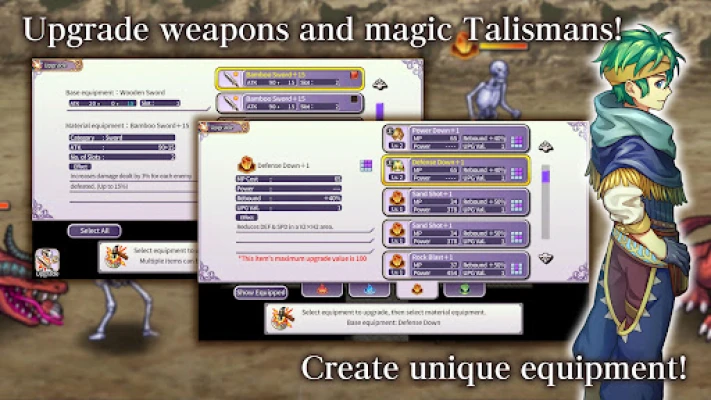 Equip Talismans to the Skill Board to acquire skills and fatal moves to turn the tides in turn-based battles. Forging and upgrading weapons, armor and Talismans from materials will grant you additional advantages. There are also strategic elements with battle formations and traps, and not to mention the variety of quests, arena and monster achievements that await as challenges!