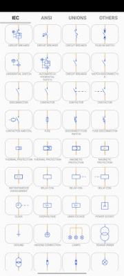 - Symbols according to IEC and ANSI standards for electrical engineering: