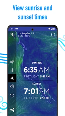 • Check times for sunrise & sunset, even see "First Light" and "Last light" times